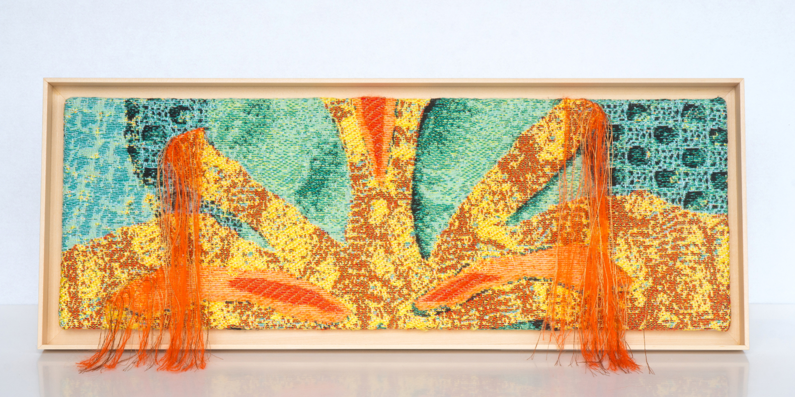 Kiki van Eijk, Bozetto #1-M, 2025, Woven Jacquard tapestry, 63,8 x 21,5 cm, Mix of yarns, including hemp, paper, mohair, Unique piece signed by the artist, framed in linden wood