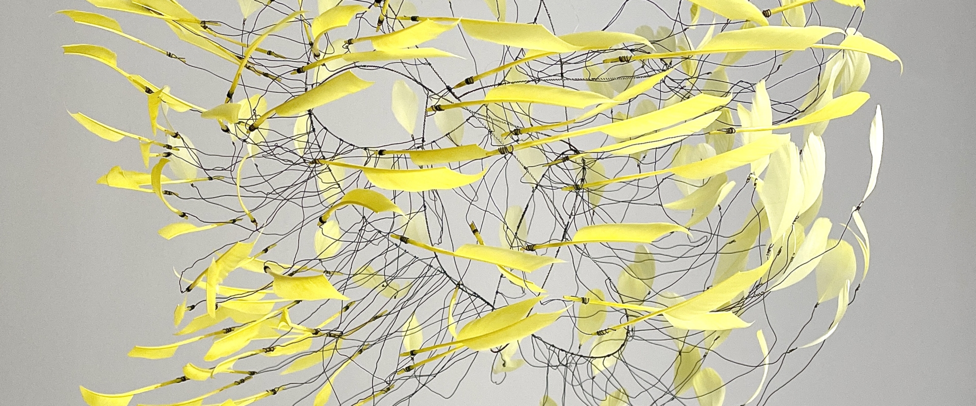 You will discover her most recent compositions up close: Atmosphères mobile sculptures, Immersions and Haikus feather paintings, as well as the Cosmos and Ciel series, which catch light in unexpected ways, where transparency, colour, and layering transform fragility into presence. You will also be able to engage with the artist about her materials, her intuitive process, and the rhythms that guide her daily creation. A studio visit with Florence Coenraets is not only a moment of artistic discovery, but also an immersion into the textures, hues, and subtle movements that animate her evolving visual universe.