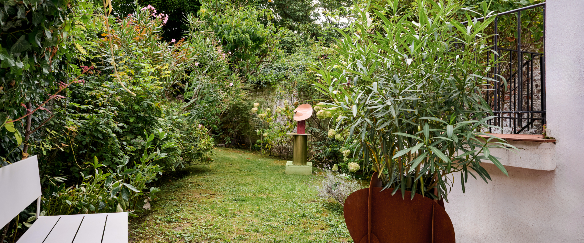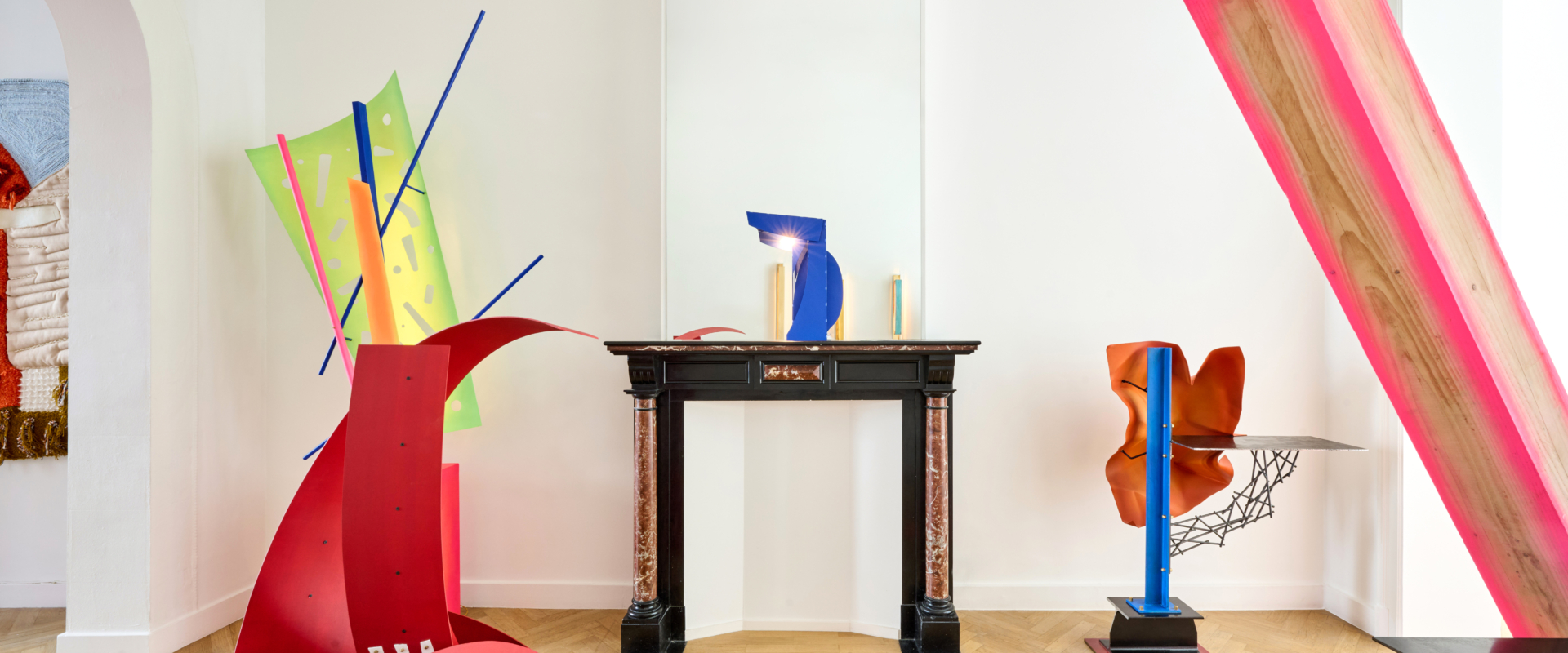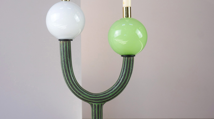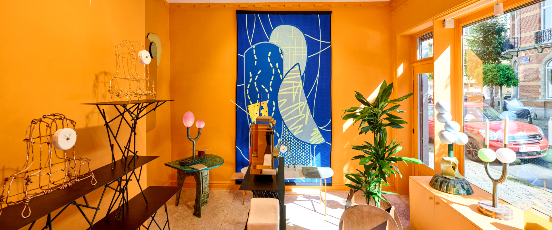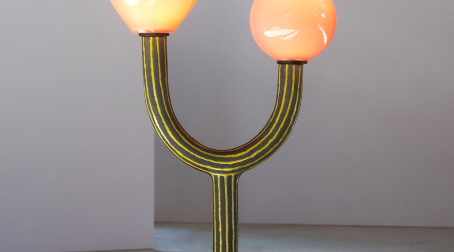 For this exhibition, Kiki and Joost have worked together for the first time to create a cohesive piece: a four-panel room divider composed of hammered copper, cotton lace, vertical cotton roping, and a mirrored surface. This is an object that, while traditionally associated with separation, here becomes a marker of shared authorship and spatial intimacy. There’s a subtle irony in the choice: perhaps only two designers so precisely in tune could choose to materialise their dialogue through an object meant to divide. Yet rather than creating distance, the piece proposes a threshold – inviting reflection, not only in the literal sense of the mirror, but in the way it embodies a synthesis of form languages, techniques, and material affinities. In this single gesture, the structural and the poetic, the precise and the intuitive, merge _ Maria Cristina Didero, Independent Design Curator and Author