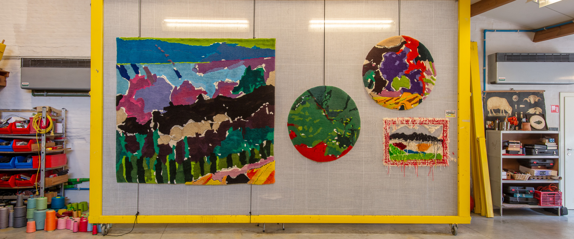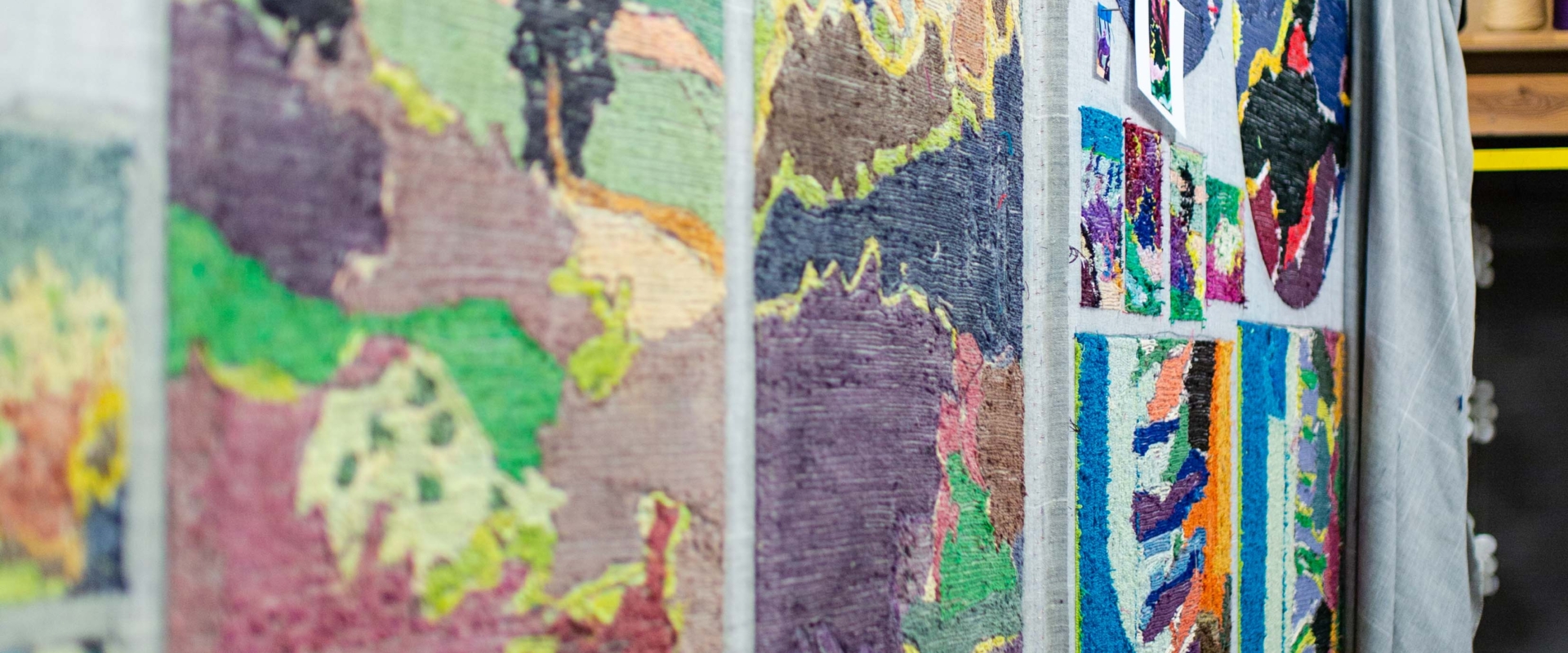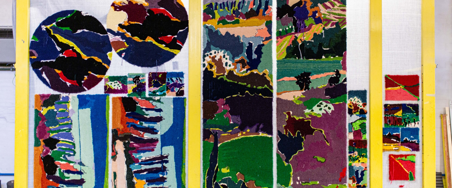 Spazio Nobile is delighted to invite you into the world of Vera Vermeersch, a leading figure in Belgian textile art. She conceives and executes her creations, inspired by Italian landscapes and Old Masters such as Van Eyck. She masters both yarn and composition, transforming sketches into hand-tufted tapestries and bozzetti. Her works become collages, an emotional mapping of the Piedmont valley visible from her home, La Palude. Each piece is a layered interpretation, where color, thread, and materials reveal hidden poetry and virtuosity. The scent of the sun and distant voices, L’odore del sole, le voci lontane, evoke a deep dialogue with nature. Through her tapestries, she translates subtlety, rhythm, and lyricism into works both technically brilliant and profoundly evocative. Vera Vermeersch’s art is a tactile, poetic fusion of landscape, memory, and imagination.