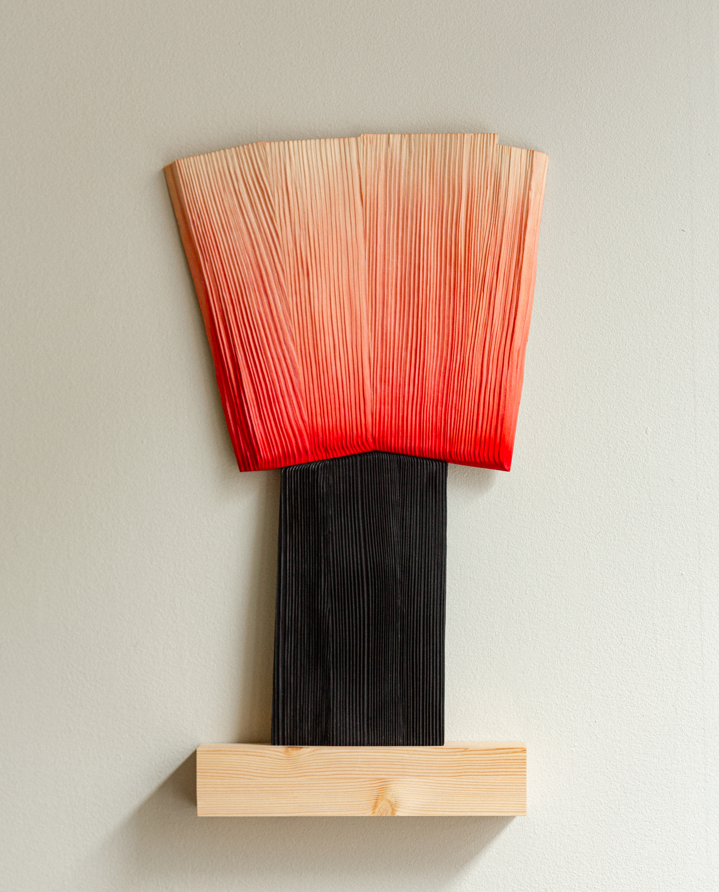 Spruce wood, Indian ink, pine wood, brushed, ink-dyed, and finished with Tung oil