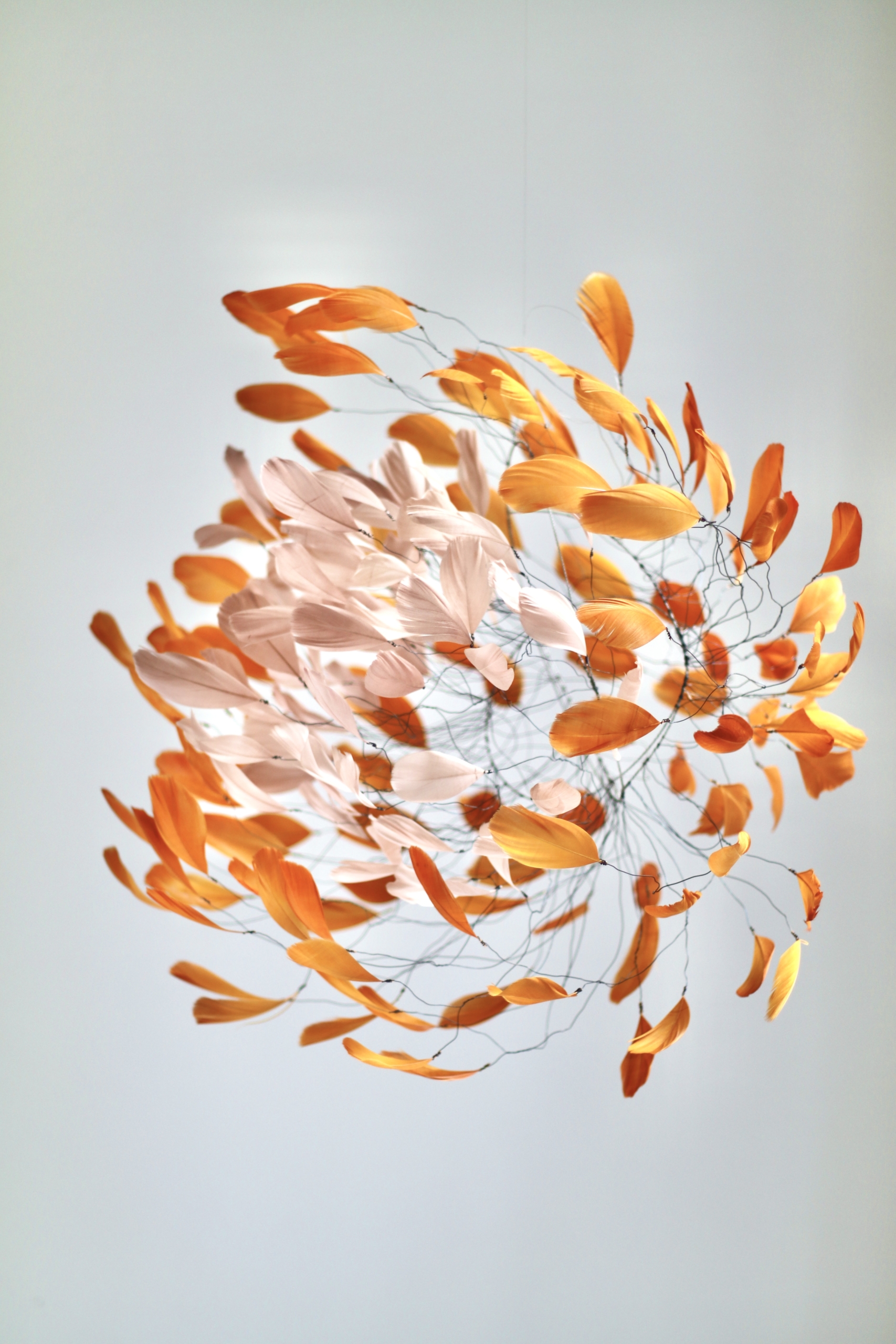 Knots and interlacing. Wire, anneled wire, and dyed goose feathers
