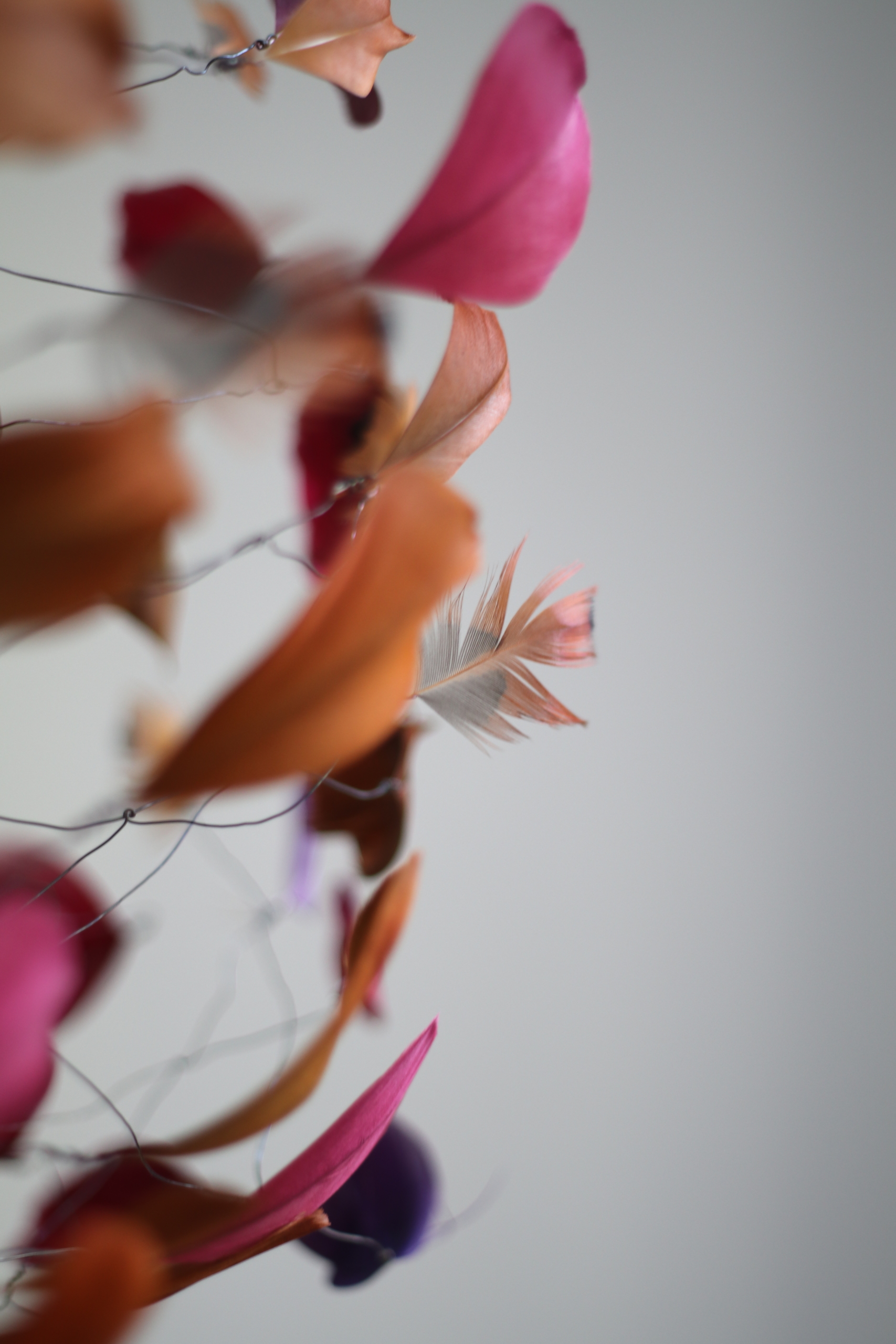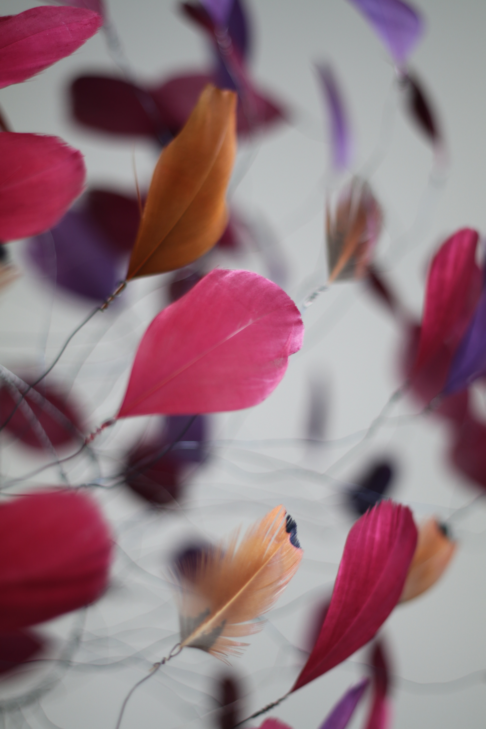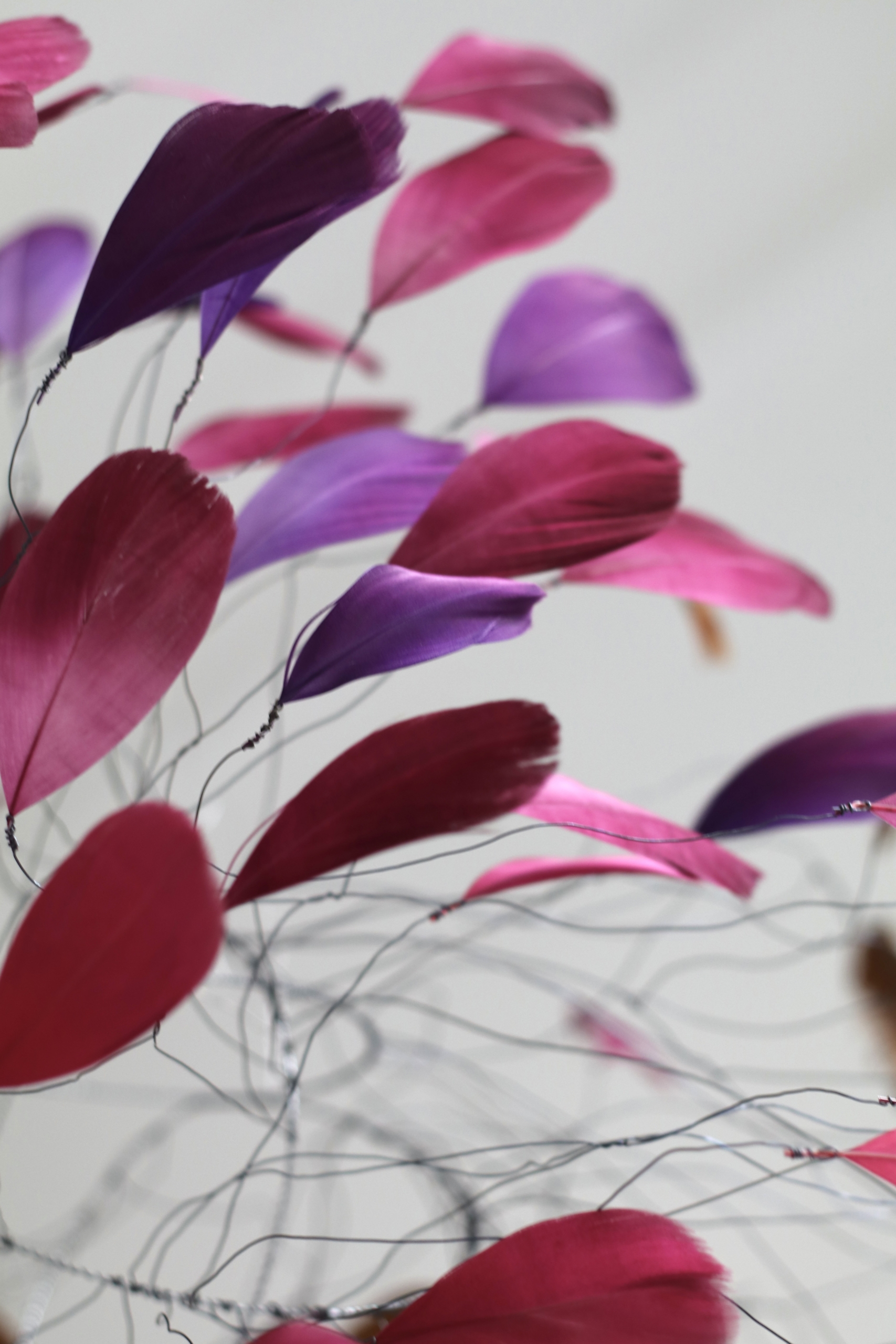 Knots and interlacing. Wire, anneled wire, and dyed goose feathers