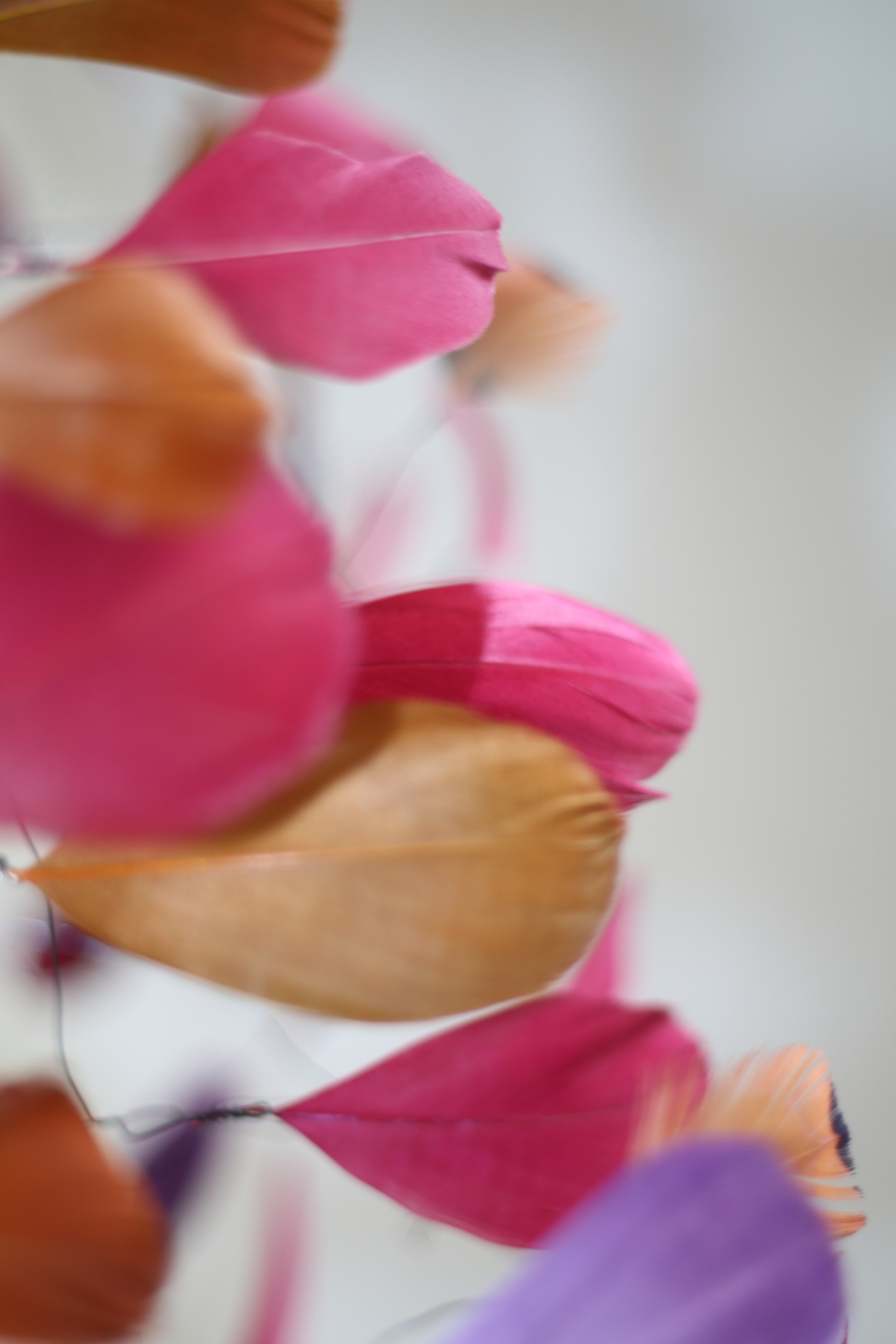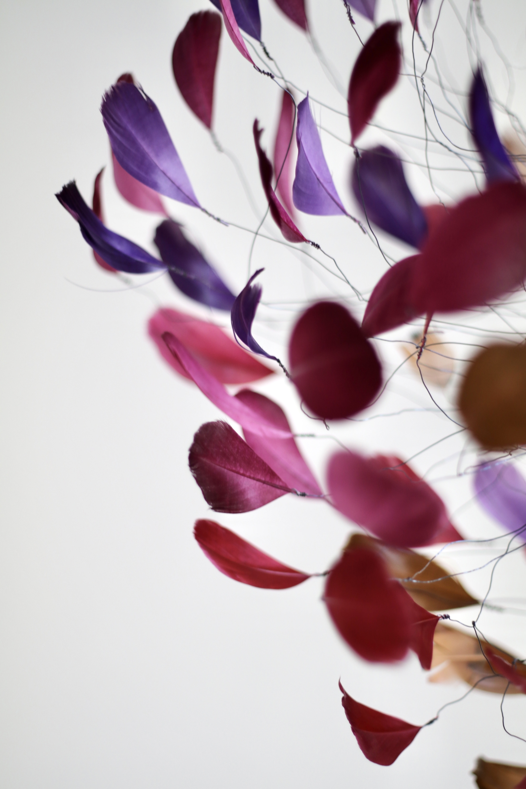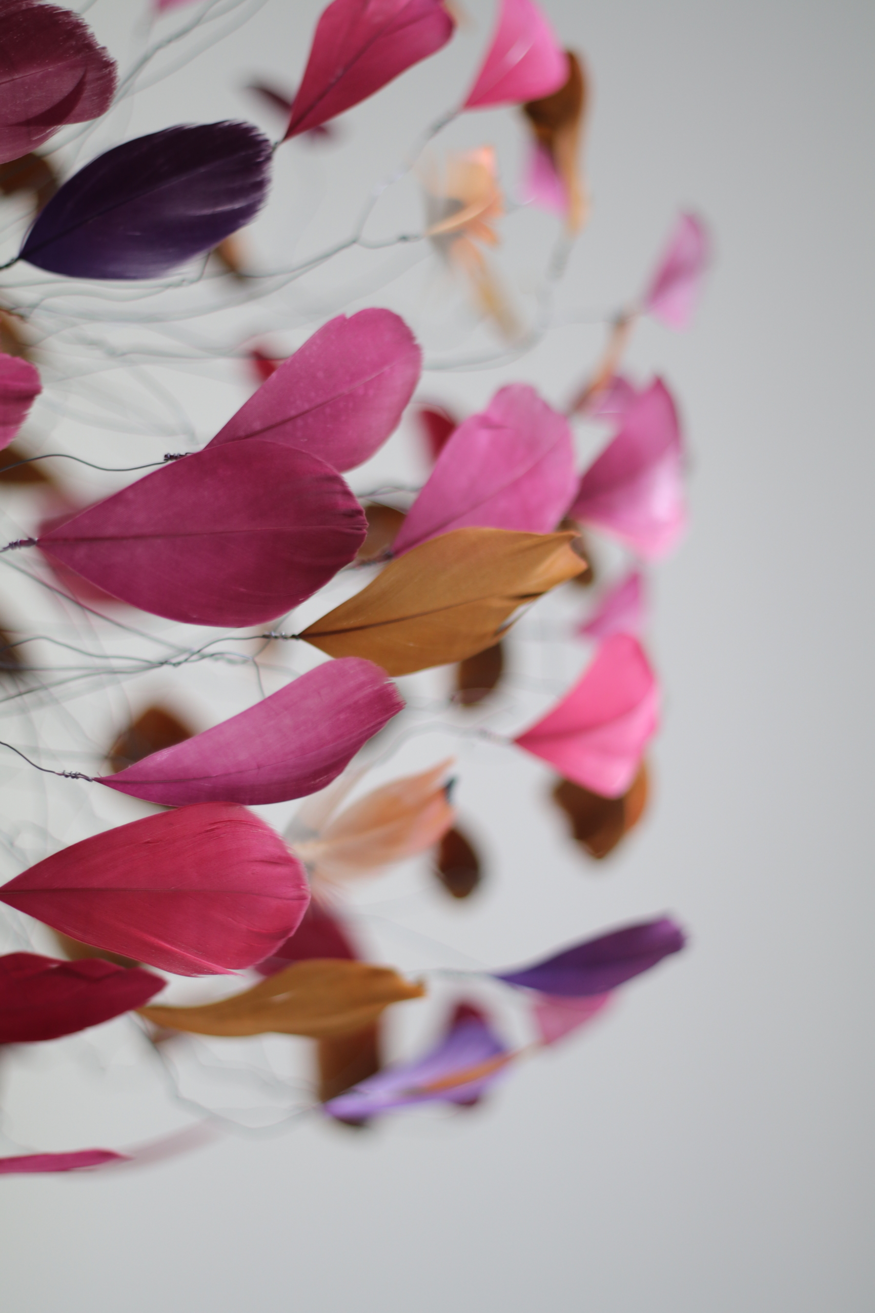 Knots and interlacing. Wire, anneled wire, and dyed goose feathers