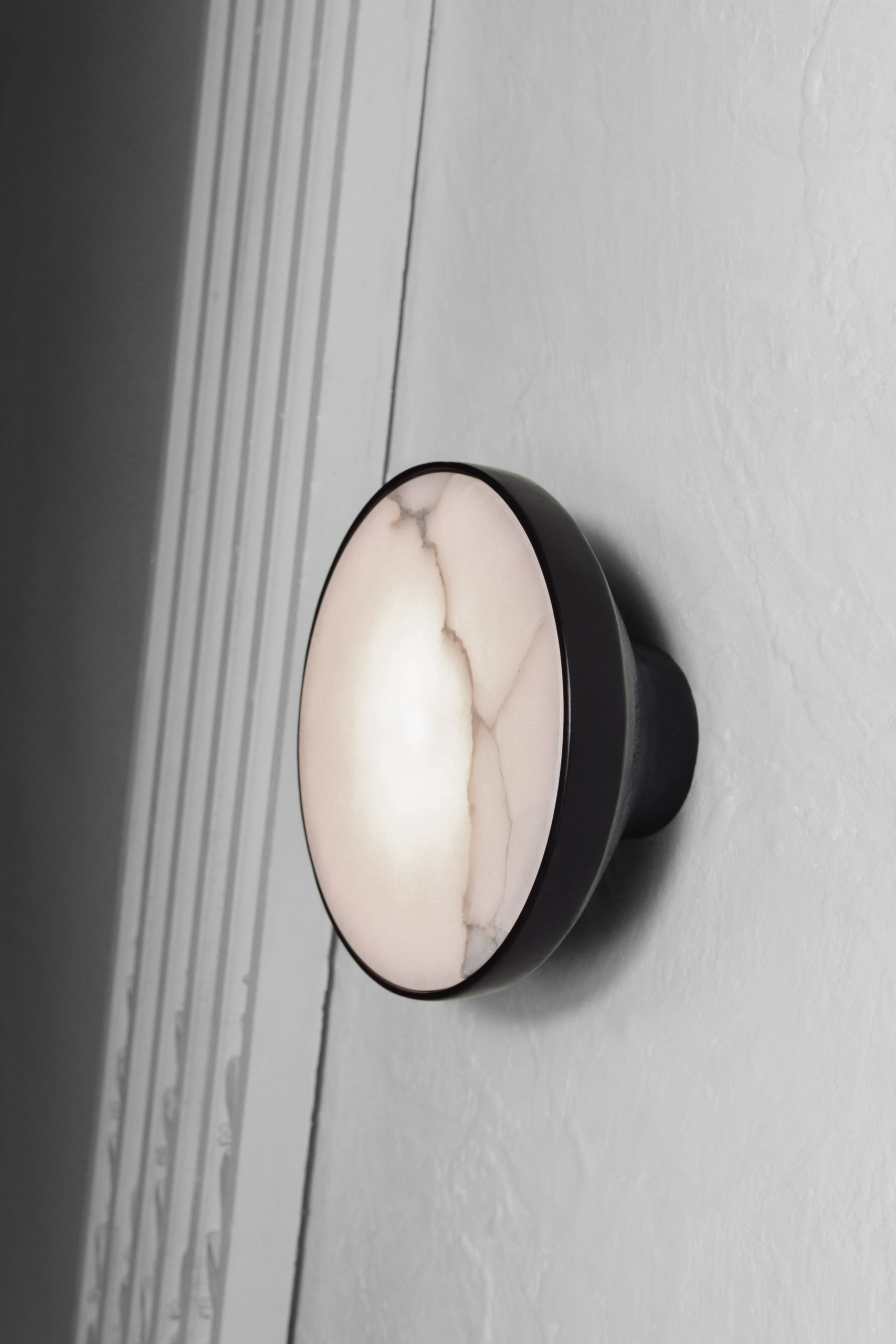2018 Sand cast and patinated bronze sconce with alabaster shade Numbered and signed Available in variable sizes 18 – 20 – 25 – 30 cm