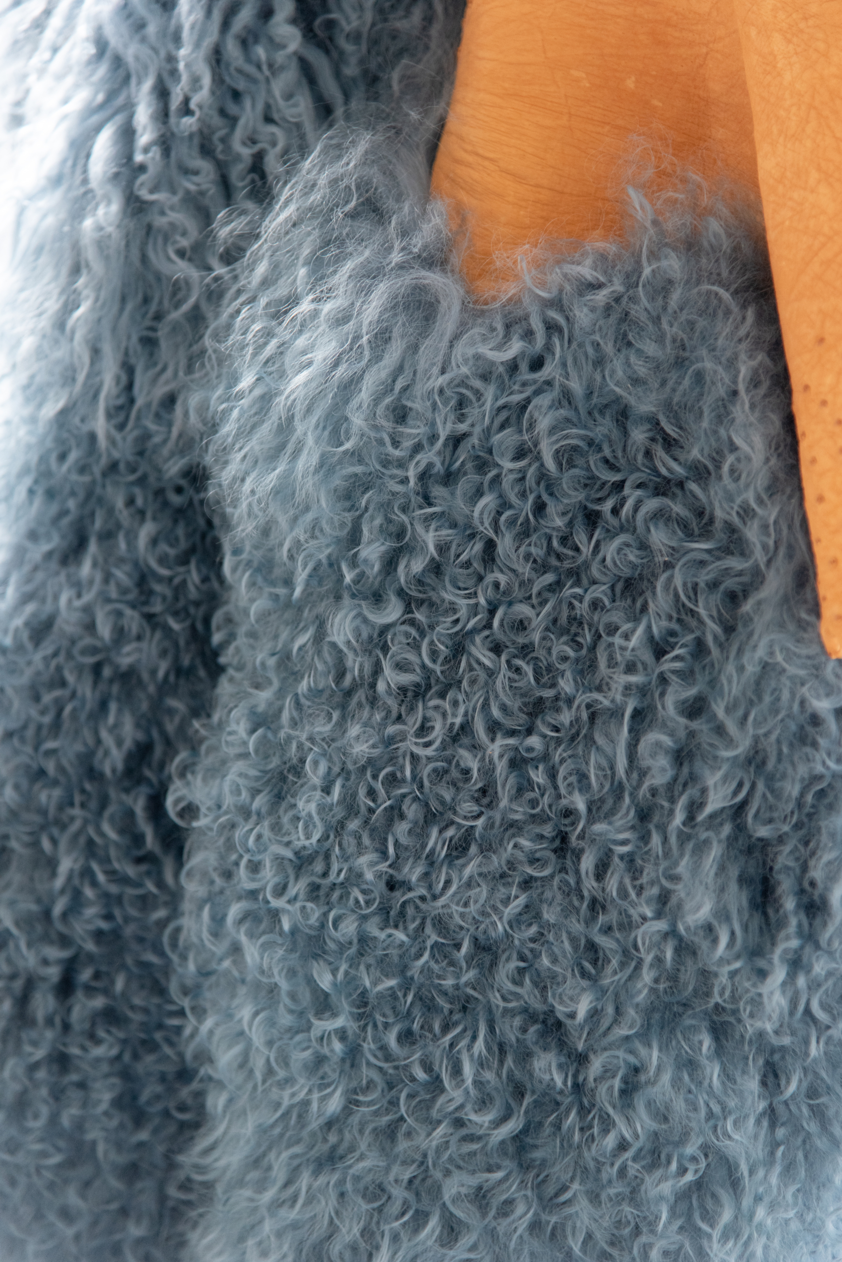 naturally dyed sheepskin quilts and interior objects 2018 140 x 160 cm altruche blue & sand