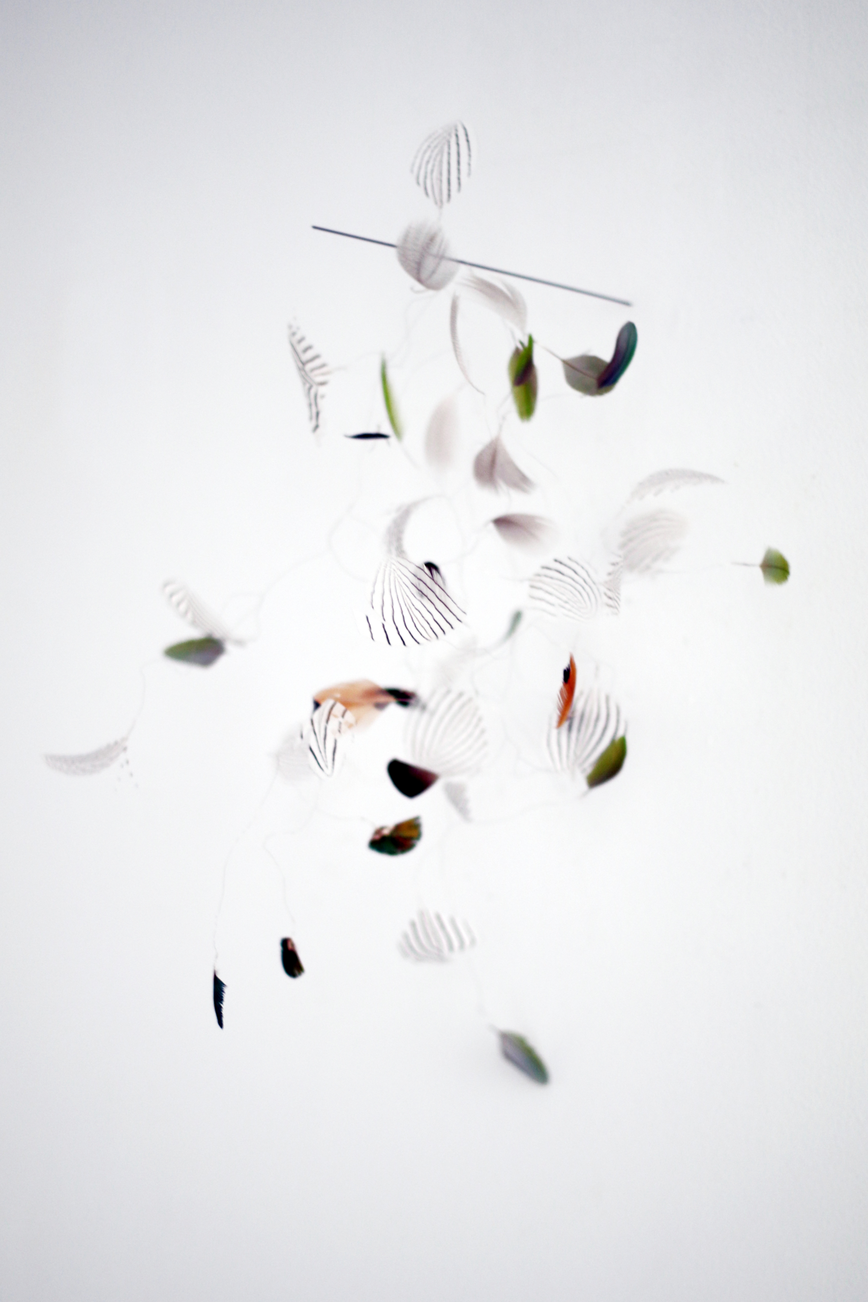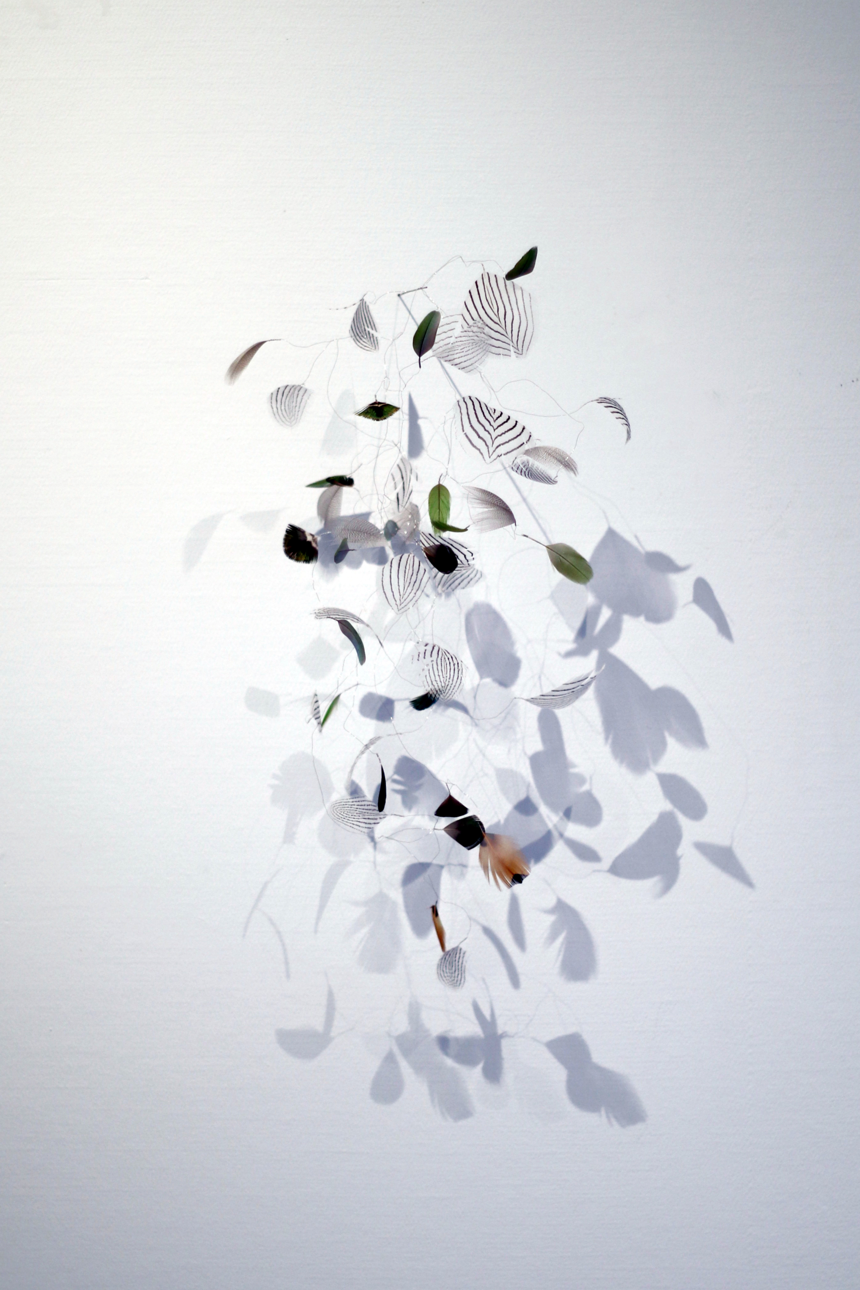 Knots and Interlacing. Iron wire, feathers from silver pheasant, rose-ringed parakeet, Lady Amherst’s pheasant, common pheasant, duck, peacock, round steel profile