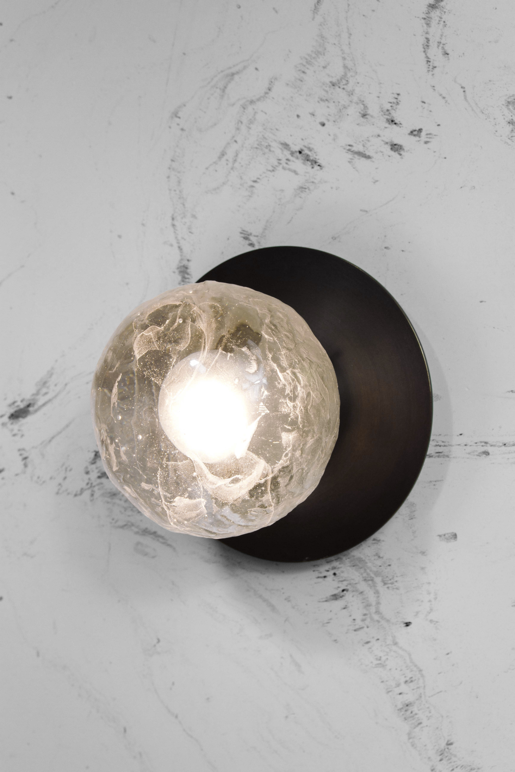 2018 Lost-wax transparent cast glass sconce with patinated brass backplate H 18 cm x D 15 cm Each piece is numbered and signed