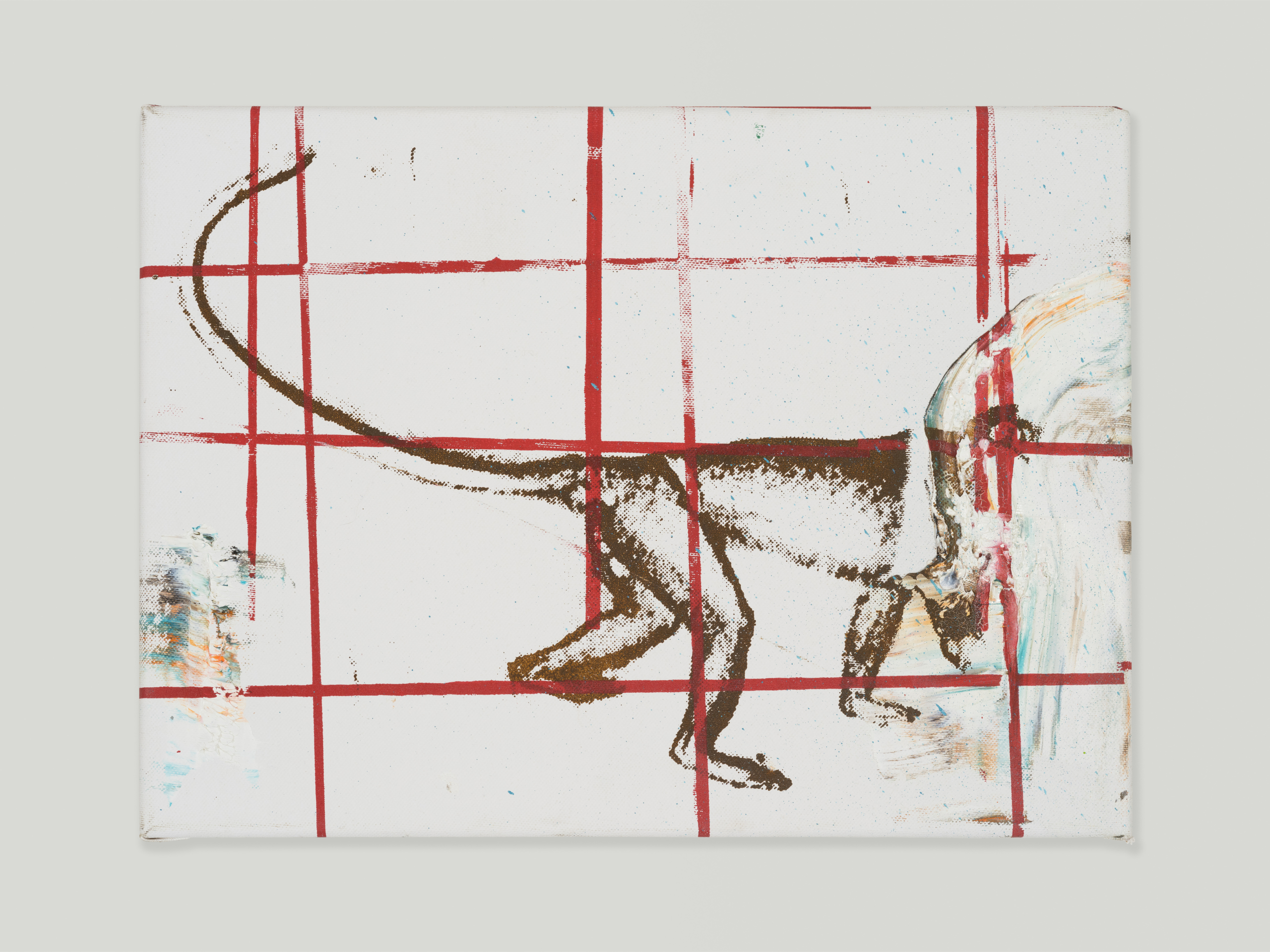 Screen-printing ink and oil painting on primed canvas