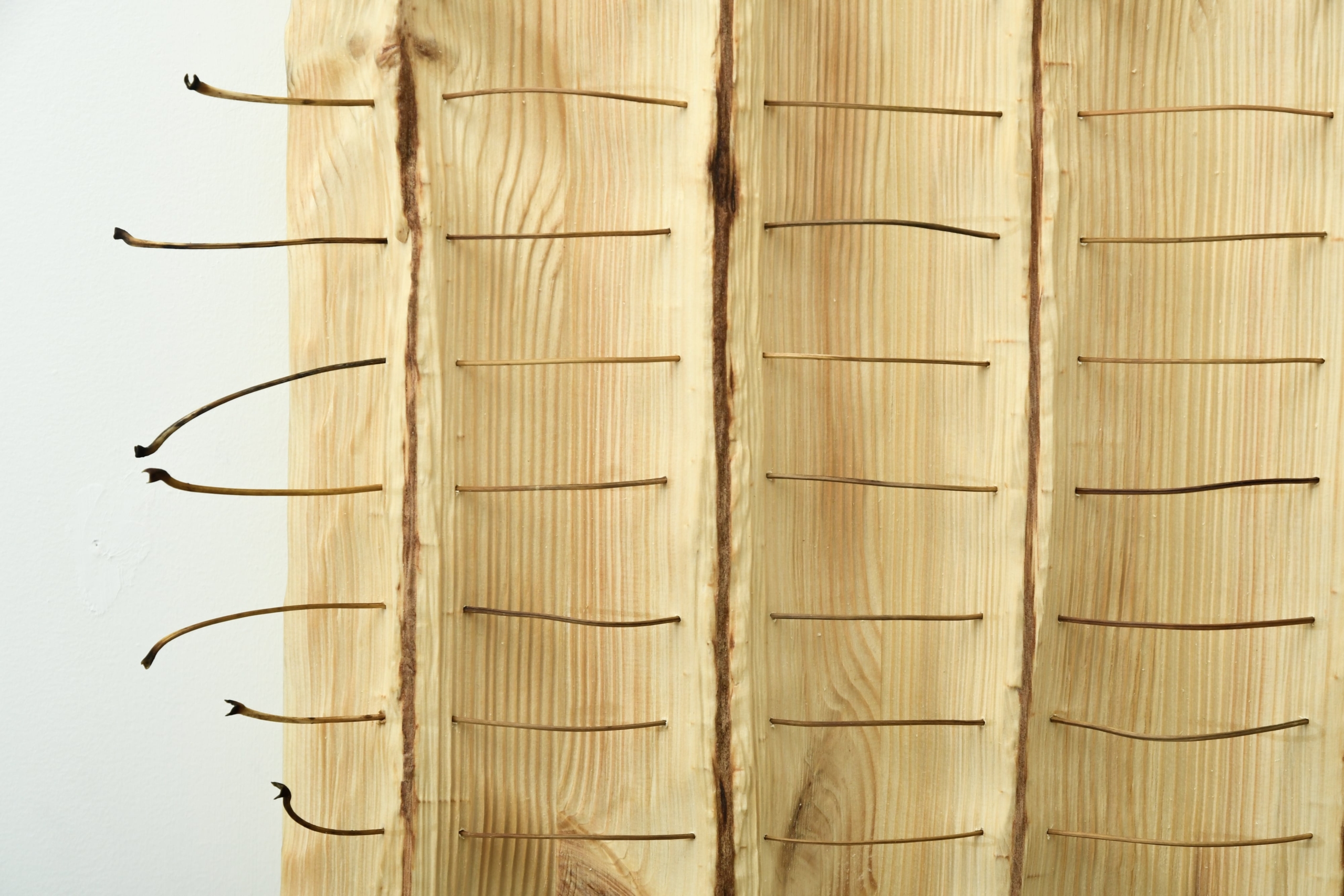 Spruce wood and maple leaf stem, brushed, split, sculpted, and finished with Tung oil
