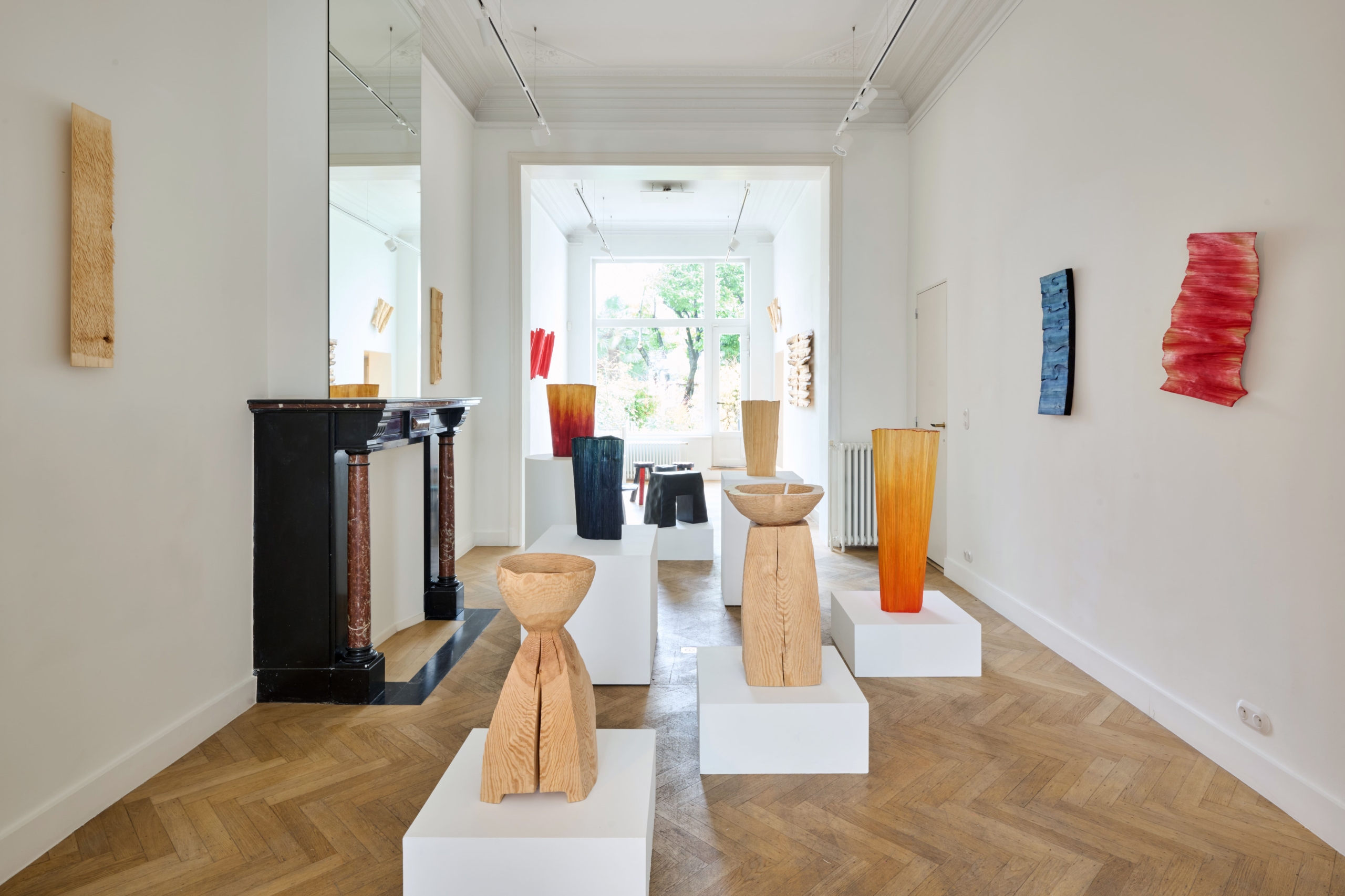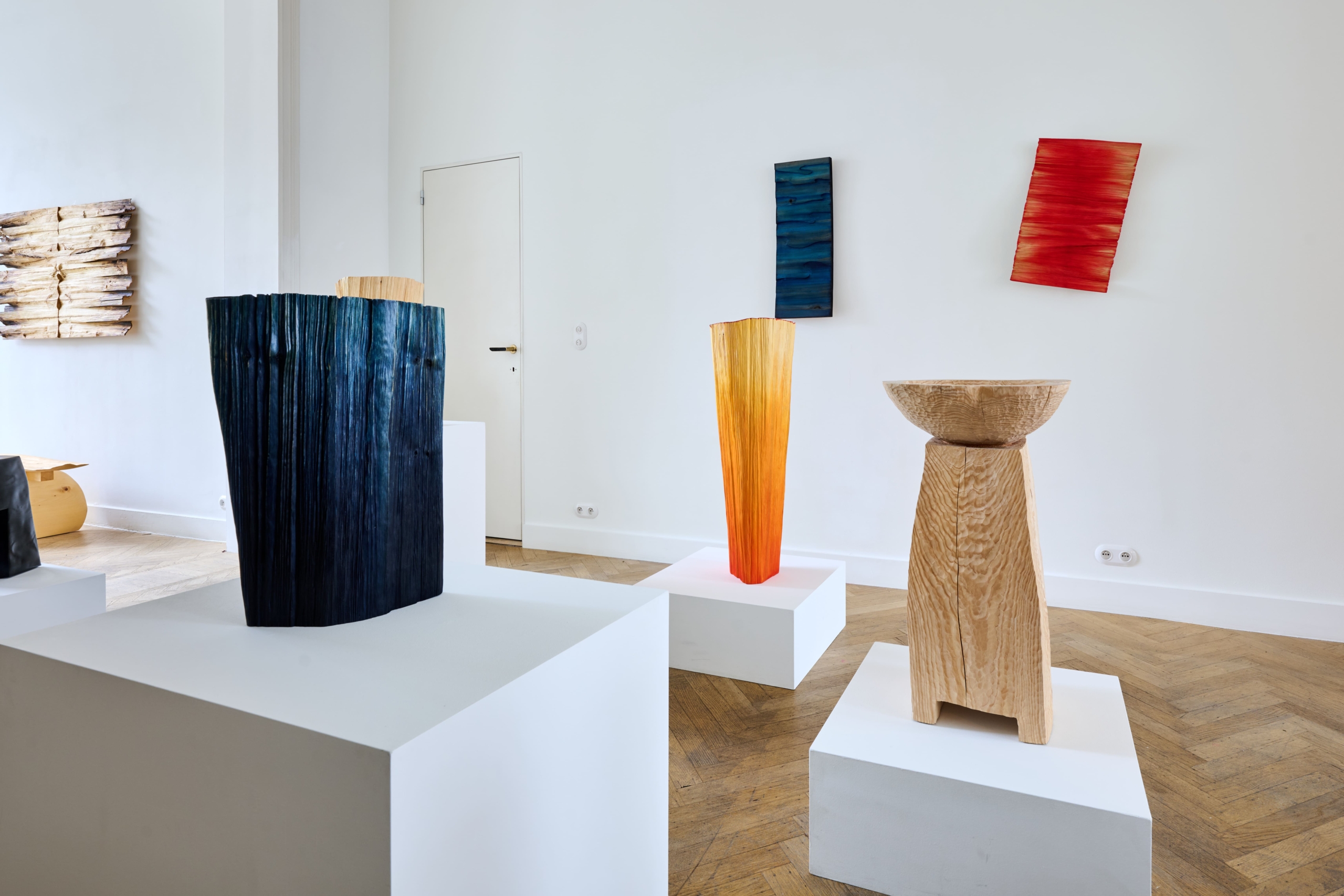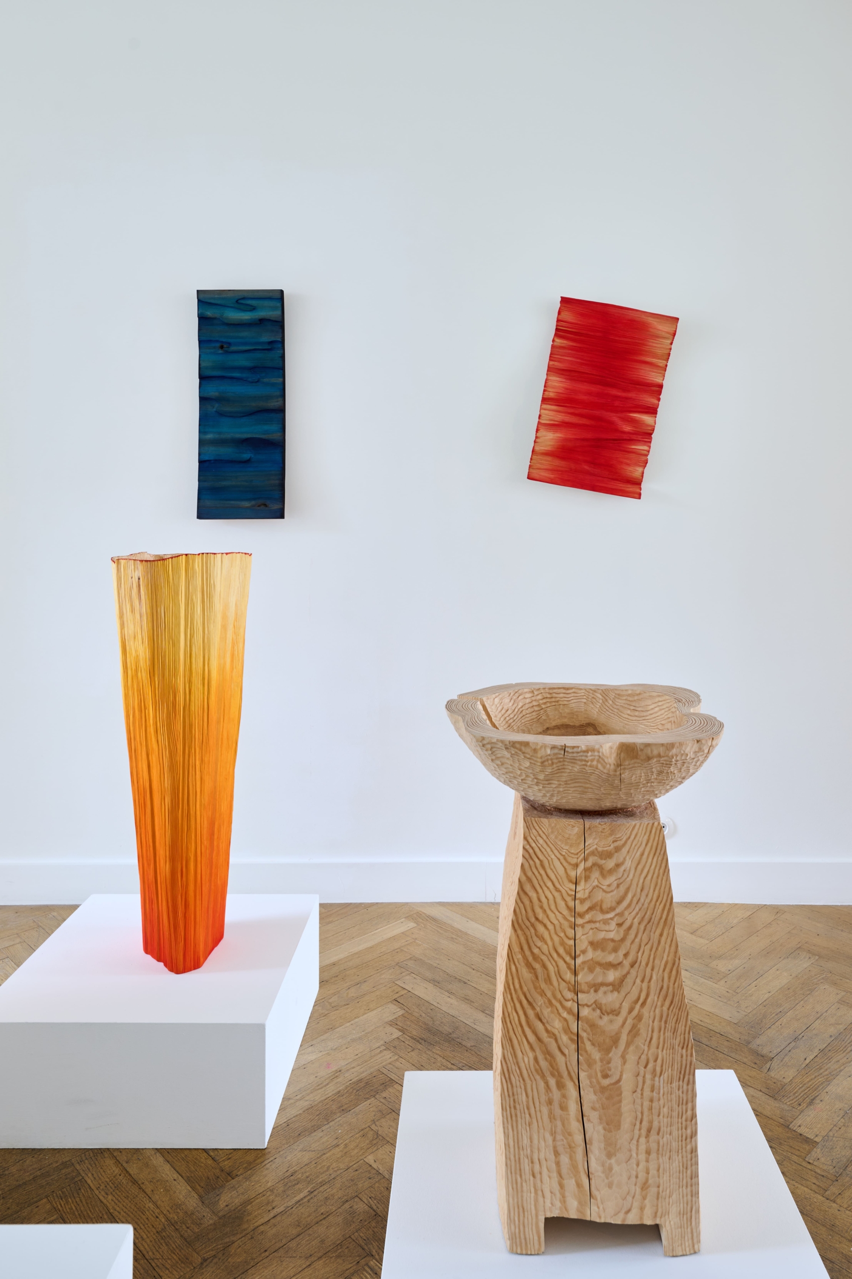 Pine wood, Indian ink, brushed, split, carved, ink-dyed, and finished with Tung oil