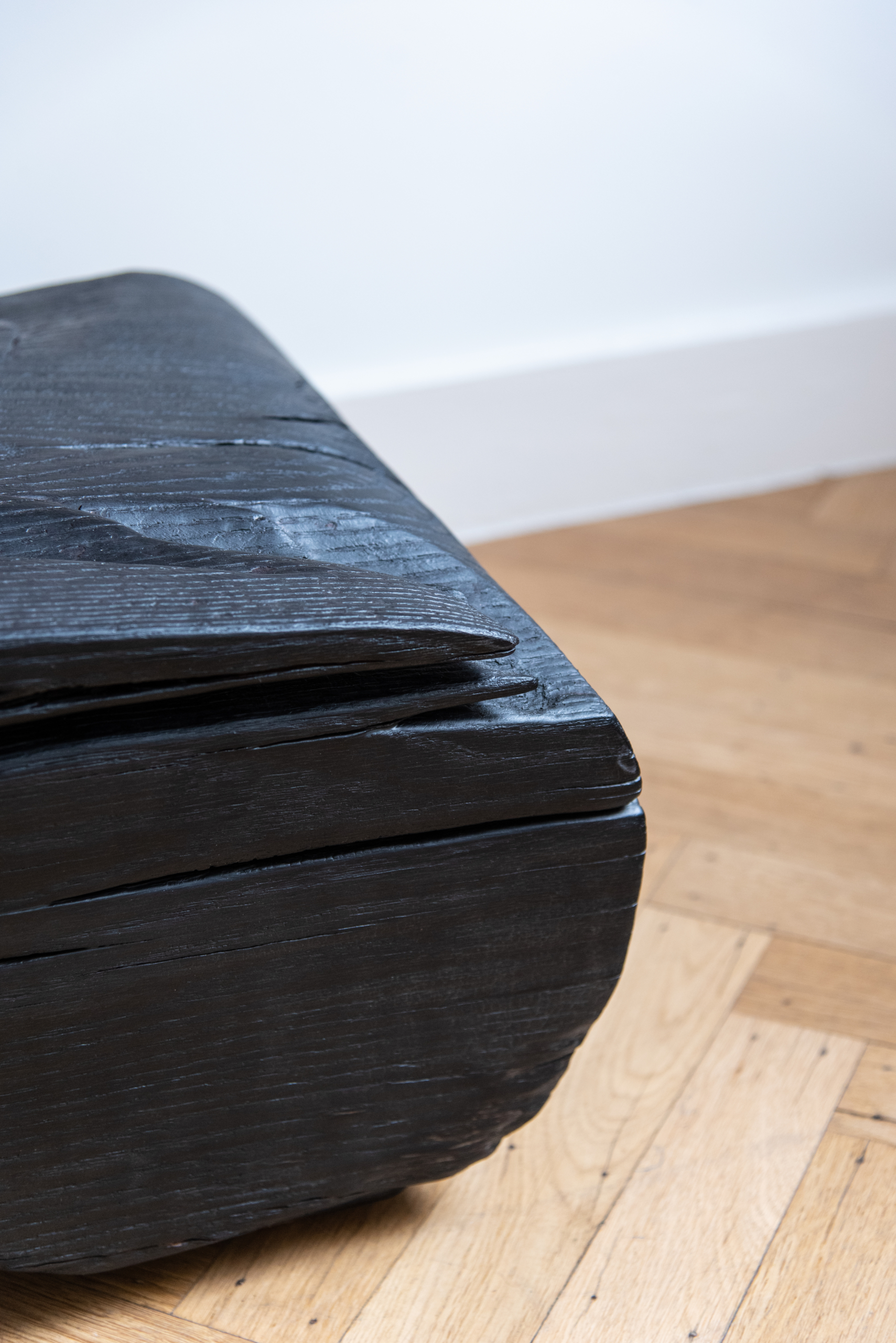 2018 Fire sculpted solid oak 200 x 45 x 35 cm unique